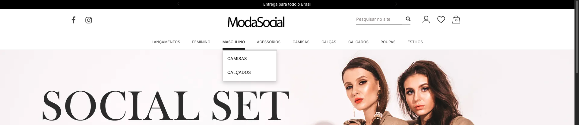Na loja virtual, as subcategorias são exibidas abaixo da categoria principal. Um exemplo comum é:
