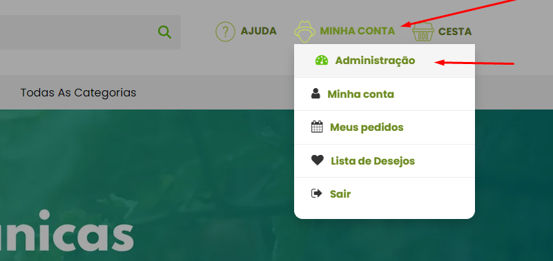 Clicando em "Minha Conta" ou no icone de usuário > Administração