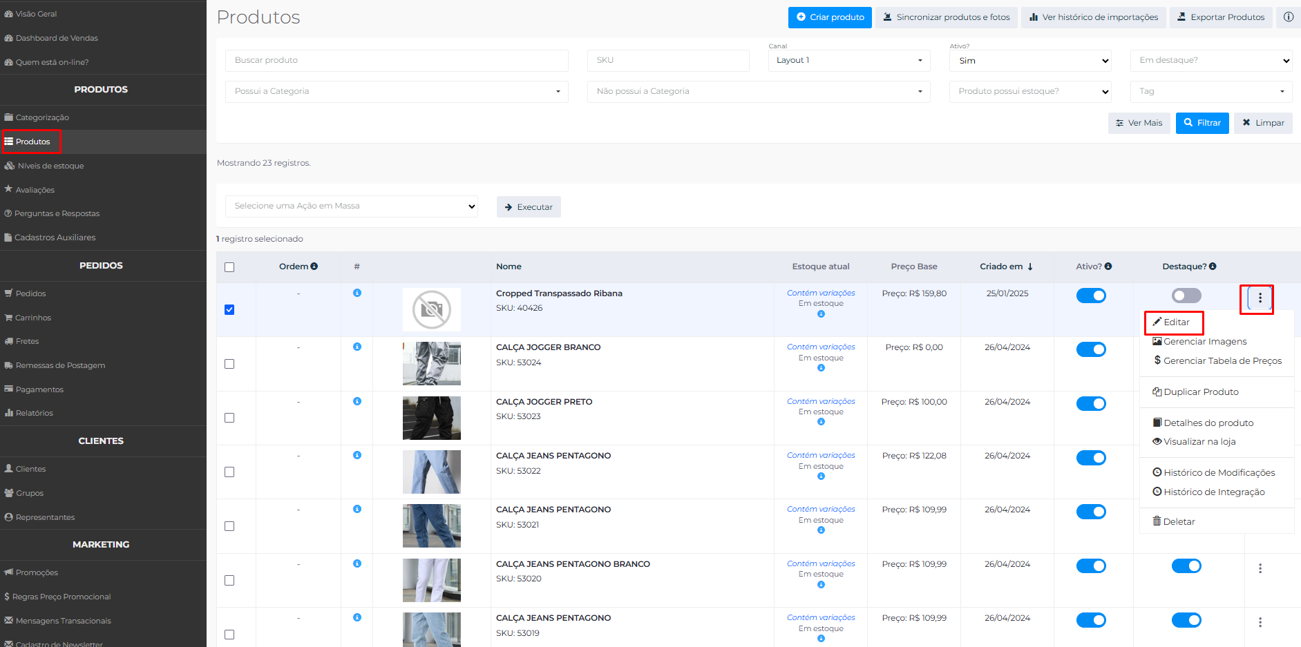 1.Navegue até Produtos > Produtos e clique no produto que deseja editar.