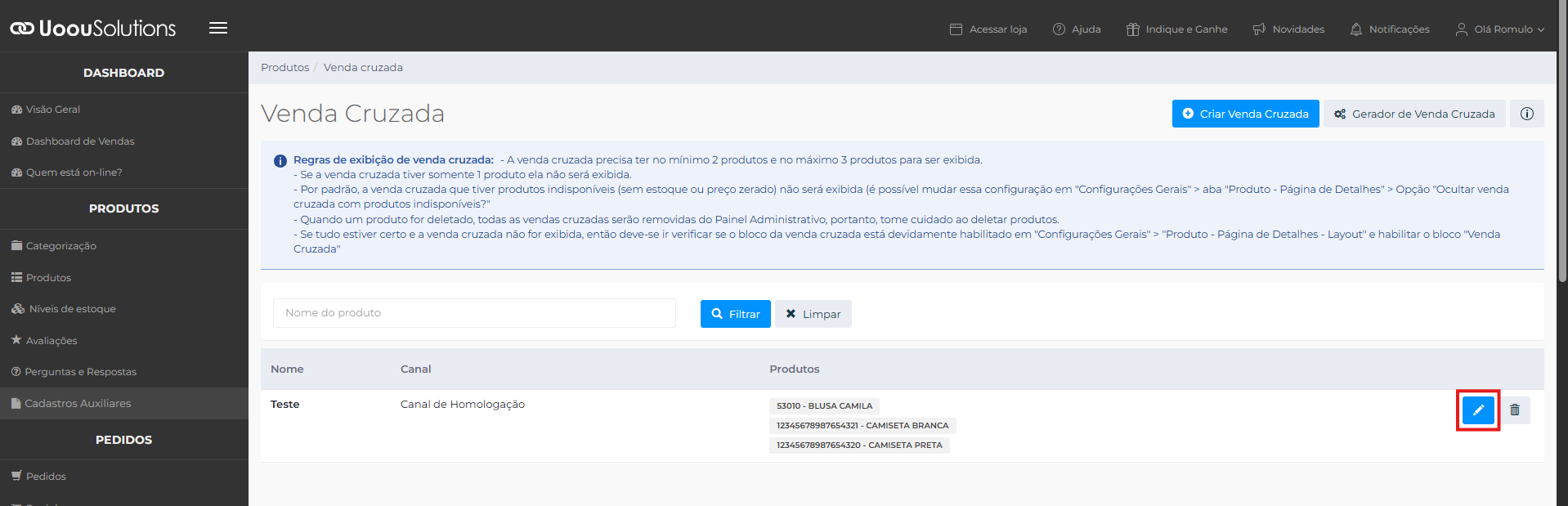 Para editar uma venda cruzada, siga as etapas abaixo.