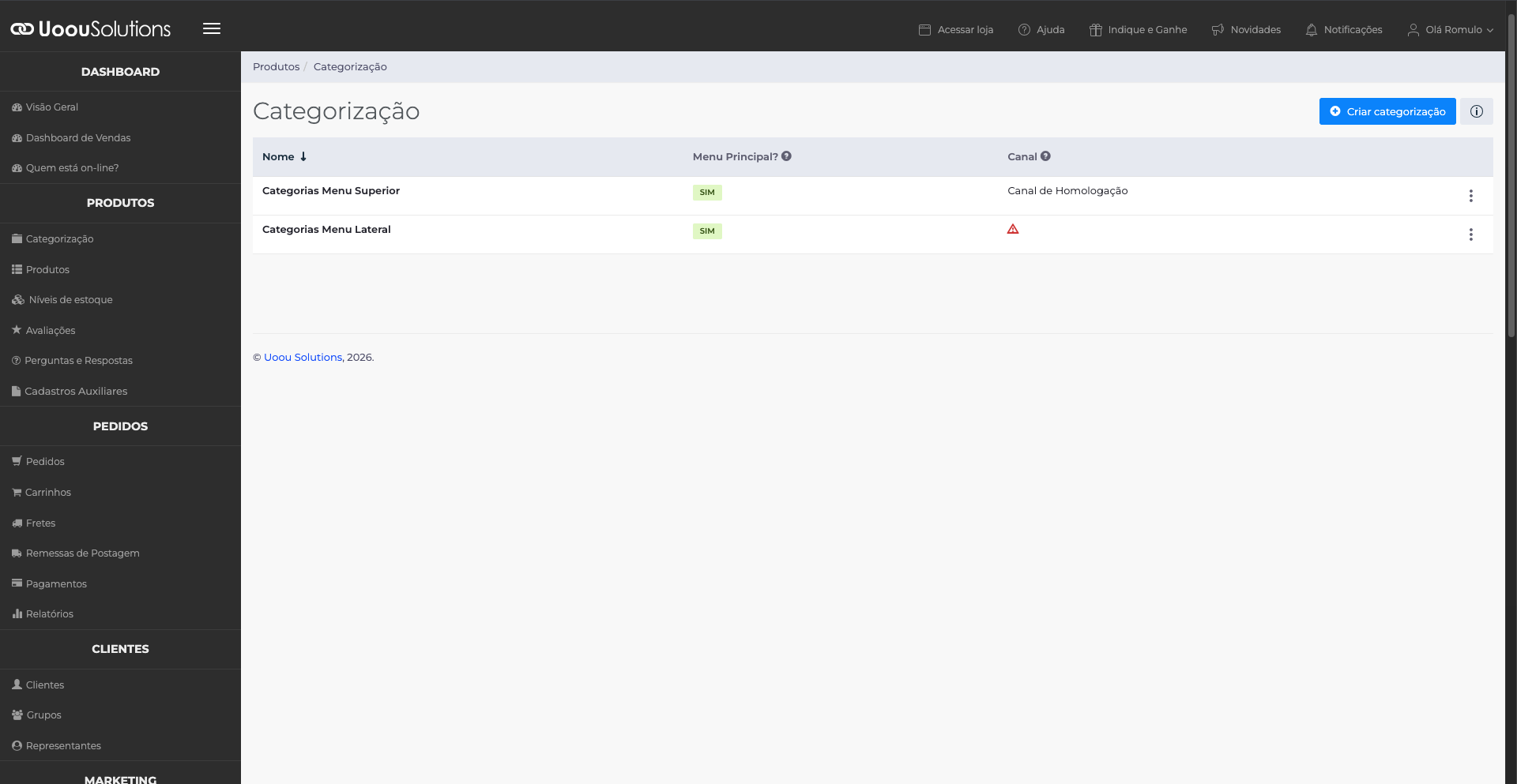 Canal: determina em qual canal da loja virtual a categoria será exibida.