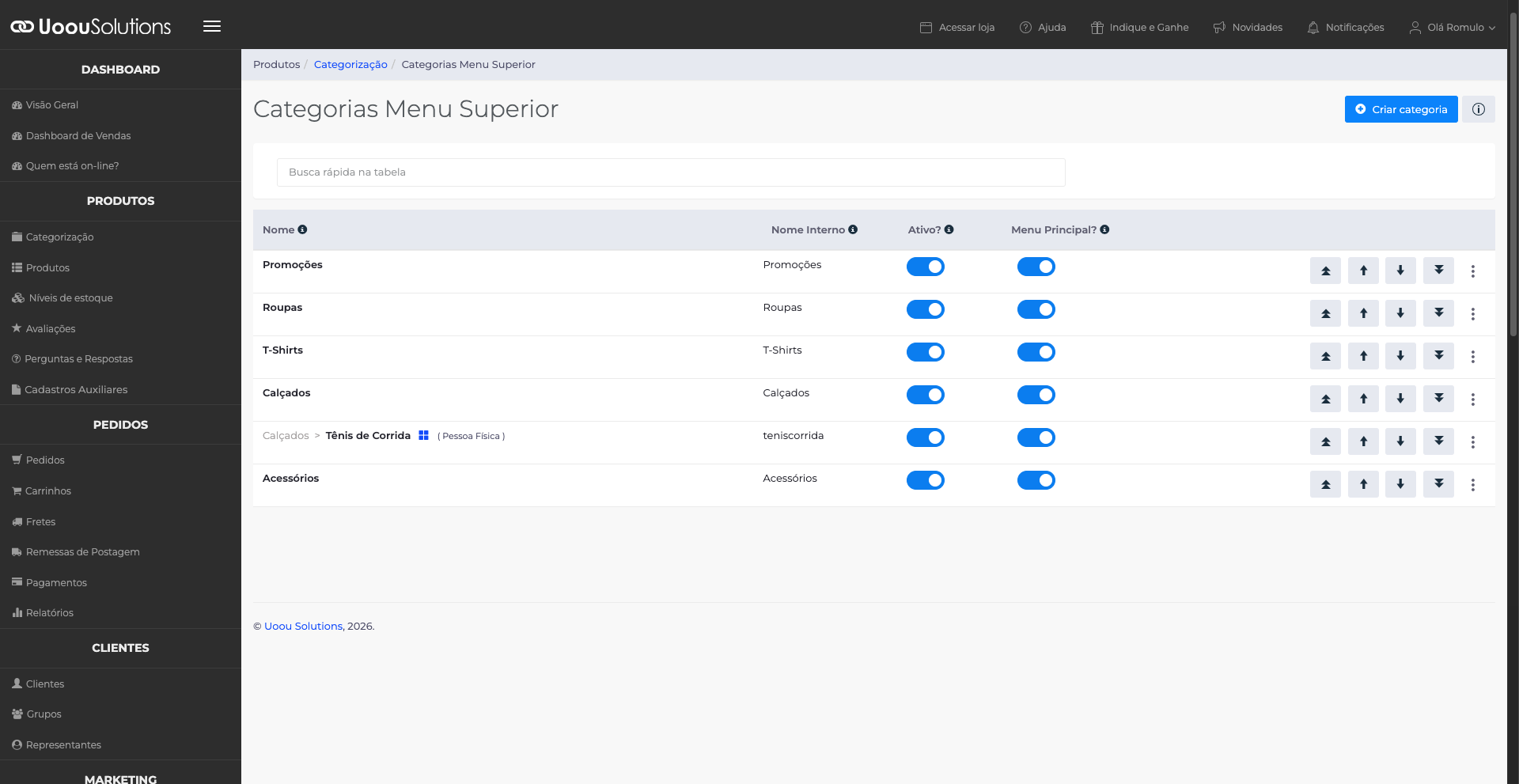 Visibilidade: define se a categoria estará ativa e disponível para exibição na loja virtual.