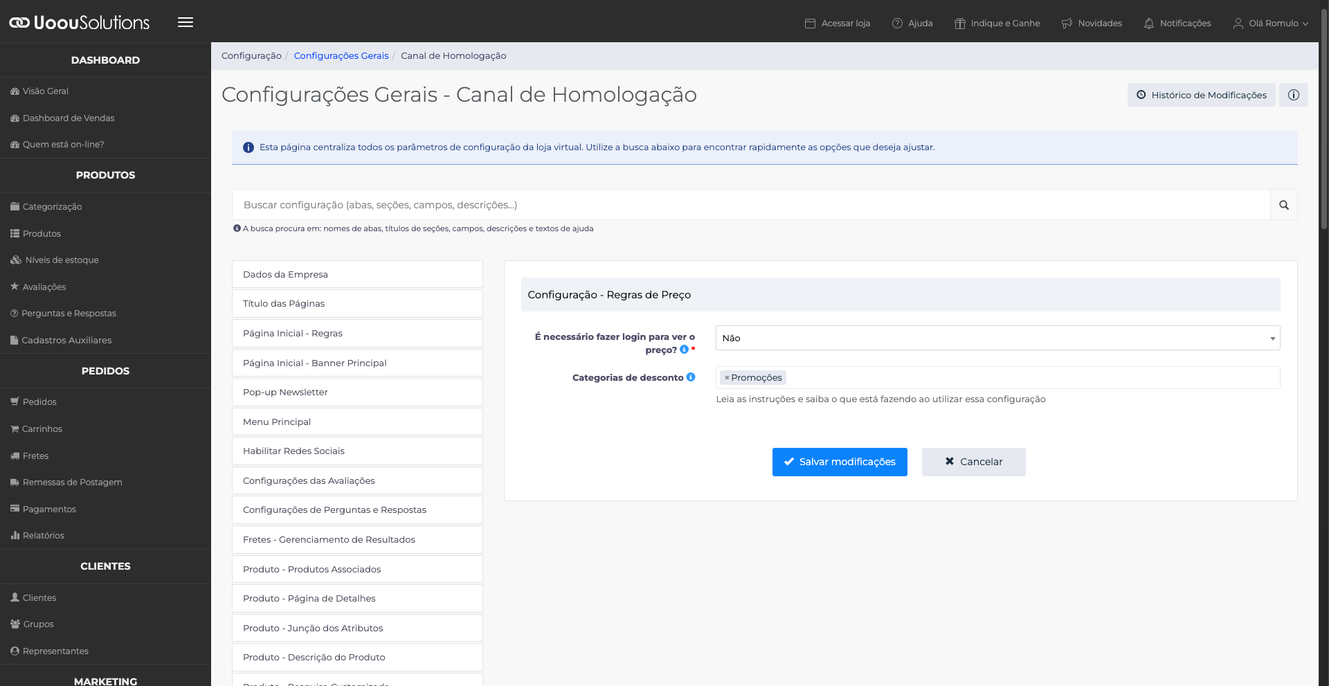 A categoria especial de promoções permite centralizar automaticamente todos os produtos que possuem desconto em uma única categoria definida pela loja. Com essa configuração ativa, sempre que um produto estiver com preço promocional, ele será automaticamente associado à categoria configurada para promoções.