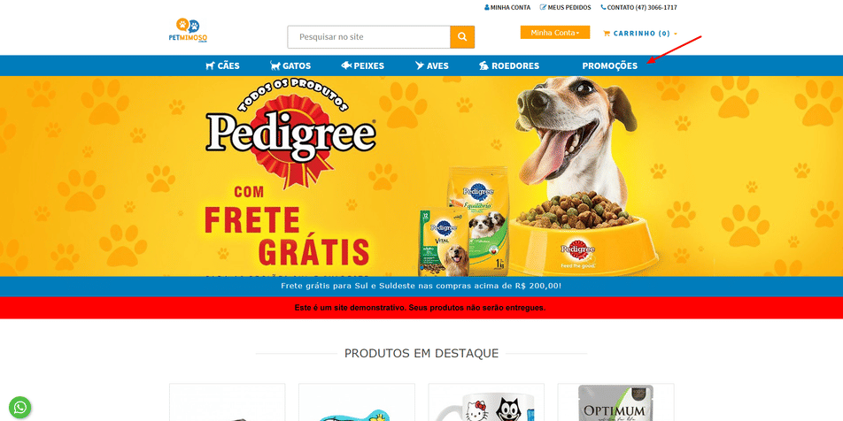 Na loja virtual, a categoria configurada para promoções exibirá automaticamente todos os produtos com preço promocional. À medida que novos produtos recebem desconto, eles passam a aparecer nessa categoria, sem necessidade de ações adicionais no cadastro do produto.