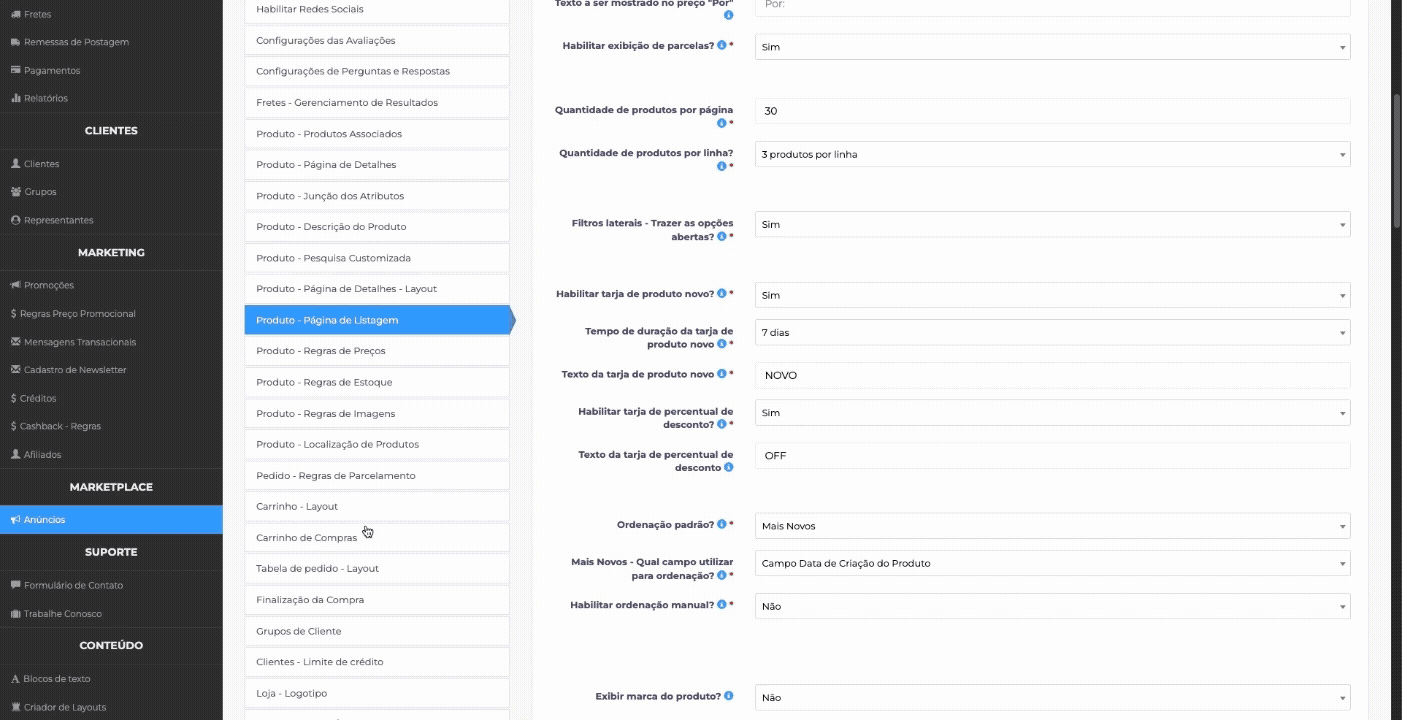 Após criar a categoria específica, configure a automação para que os produtos novos sejam vinculados automaticamente.