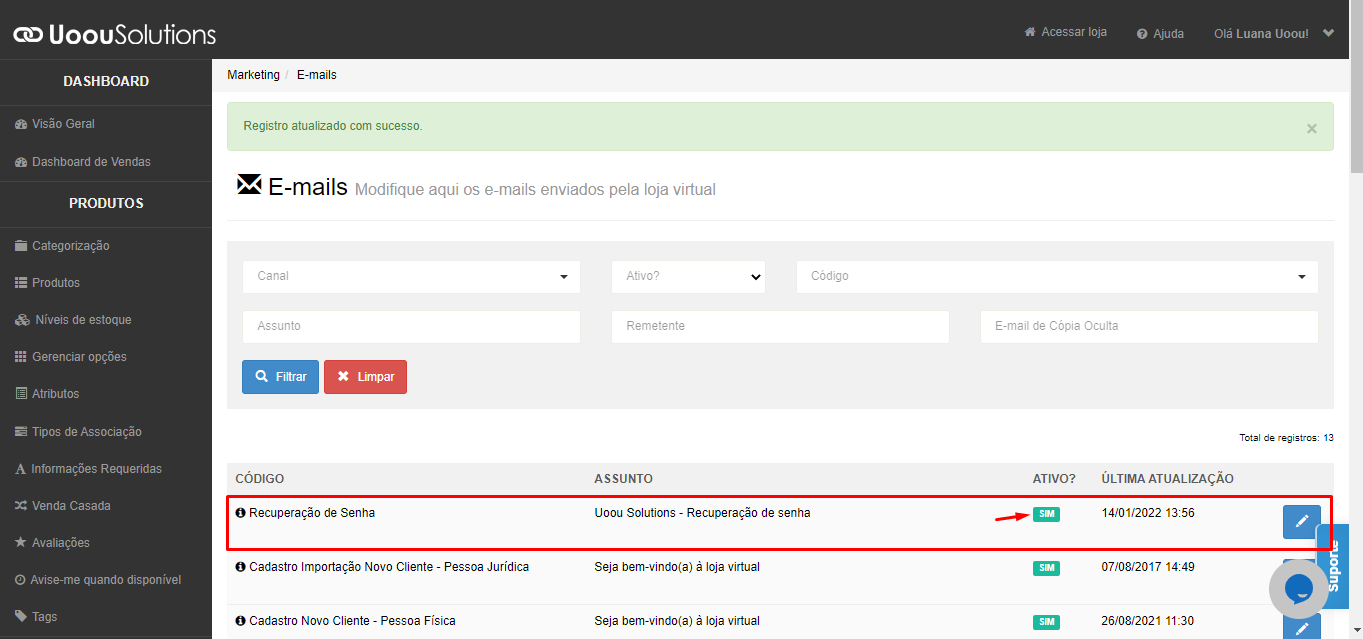 O objetivo desse tutorial é auxiliá-lo a como ativar e desativar os e-mails transacionais enviados aos clientes. Para realizar o procedimento, confira abaixo o tutorial desenvolvido pela nossa equipe: