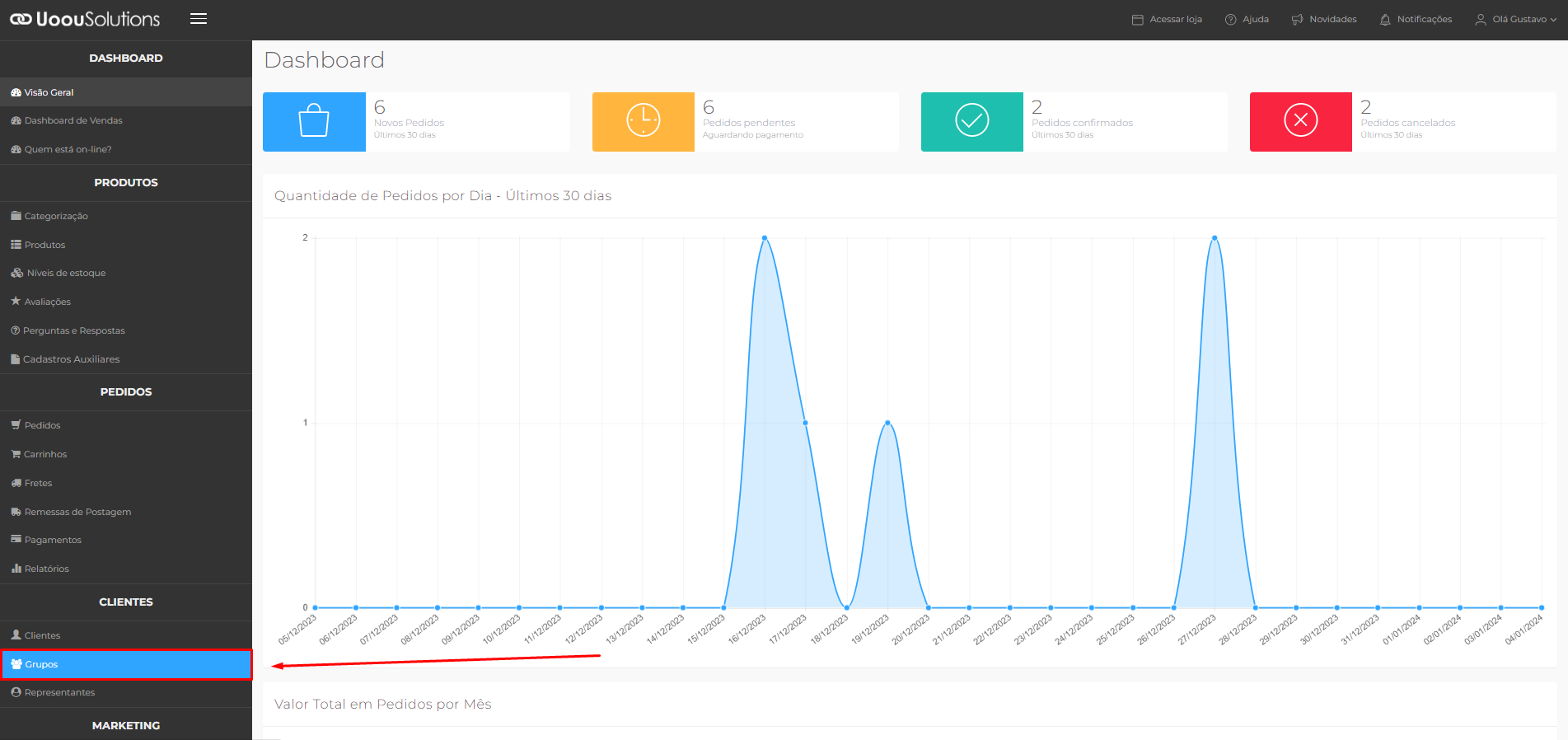 2 - Acesse o menu "Grupos" no Painel Administrativo