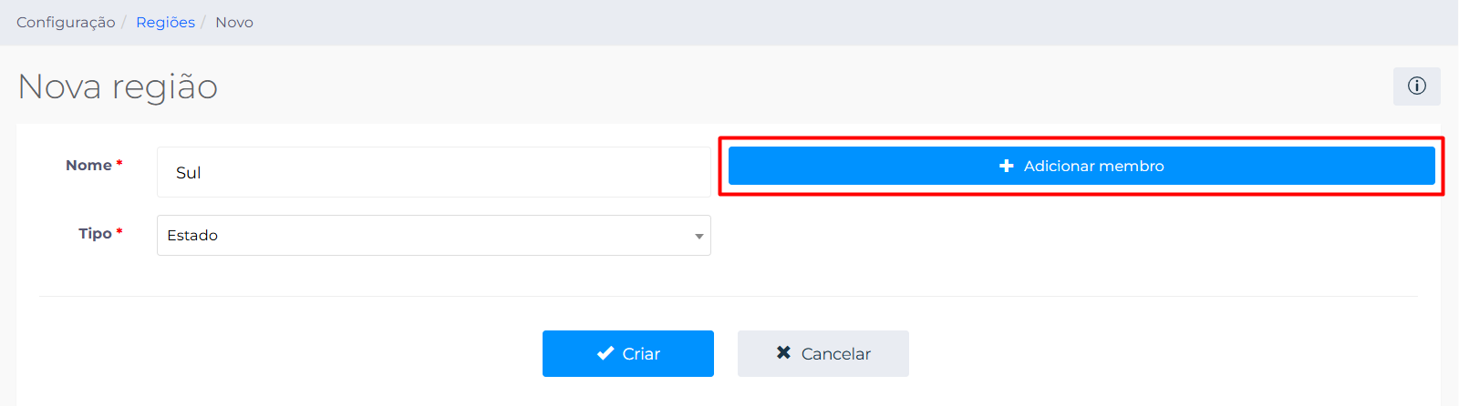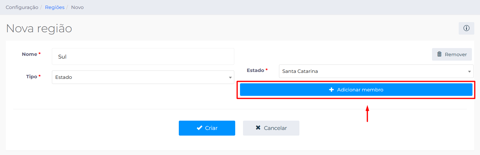- Caso deseje criar mais uma localização, clique novamente em "Adicionar Membros", neste caso iremos efetuar pois vamos adicionar mais dois estados para completar todos estados do Sul;