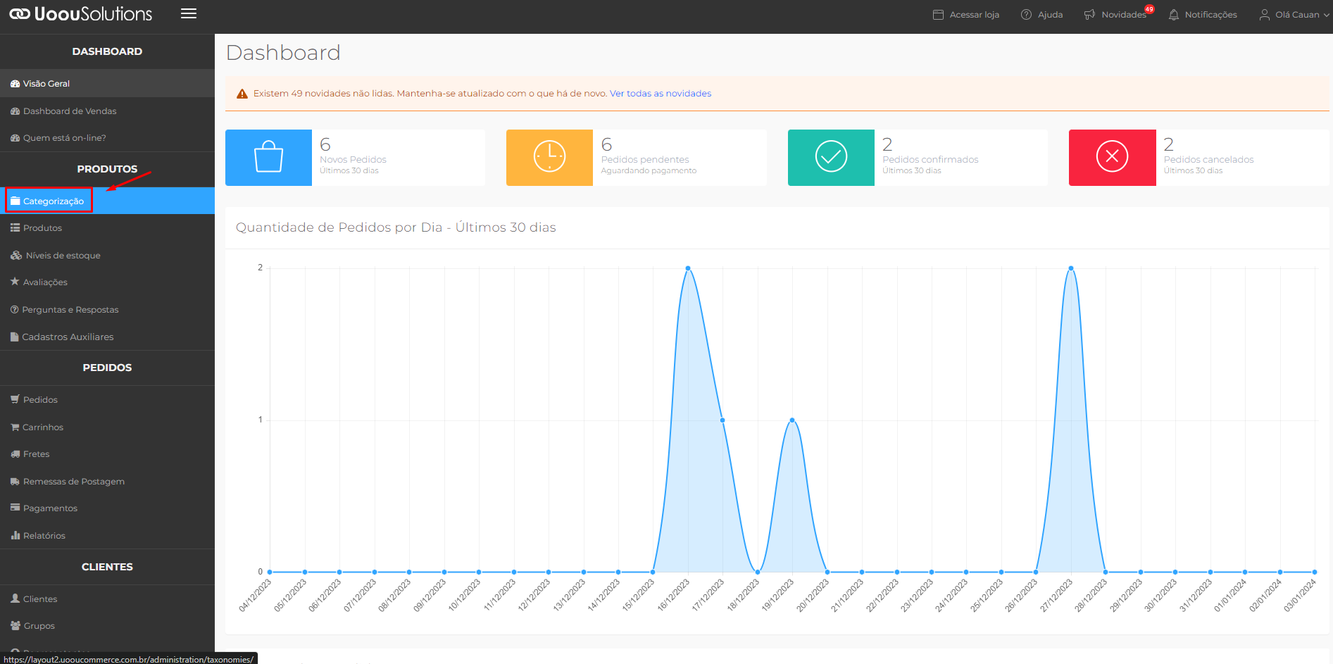 1º Passo: No painel administrativo da sua loja virtual, vá no menu "PRODUTOS" e selecione a opção "Categorização".