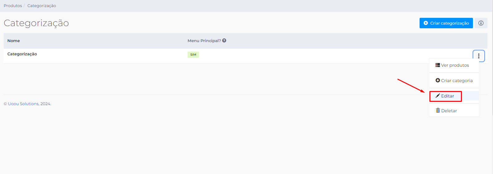 2ºPasso: Na listagem das categorizações, escolha a categorização que deseja (Geralmente é a opção "Categorias") e clique no lápis "Editar".