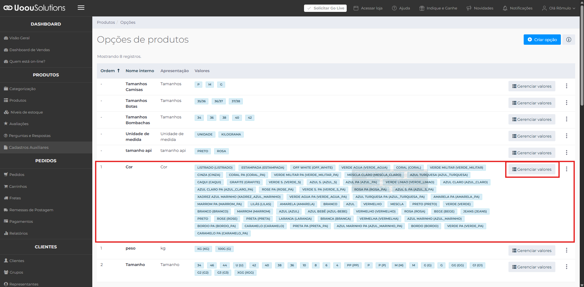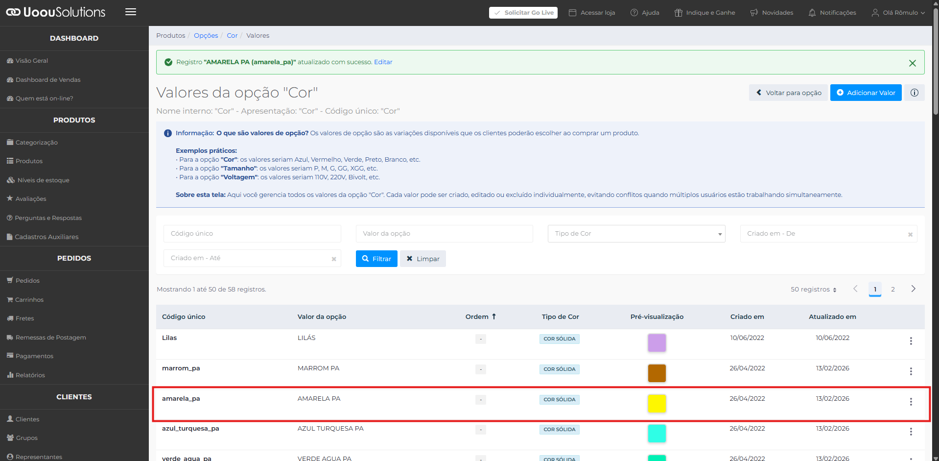 Para editar a cor de uma variação basta seguir os passos abaixo: