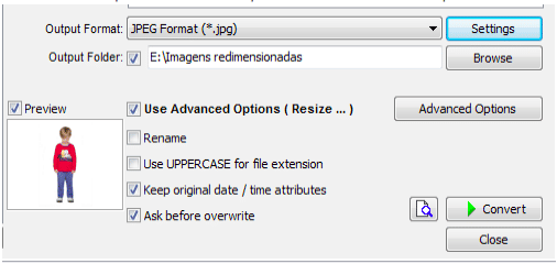 Clique em Convert. As imagens serão redimensionadas em lote, e o resultado será exibido na tela ao final do processo.