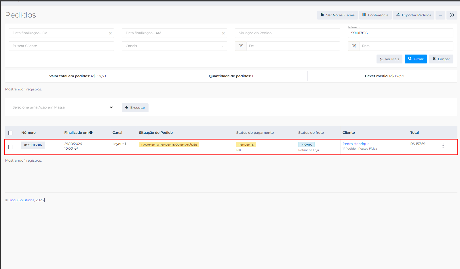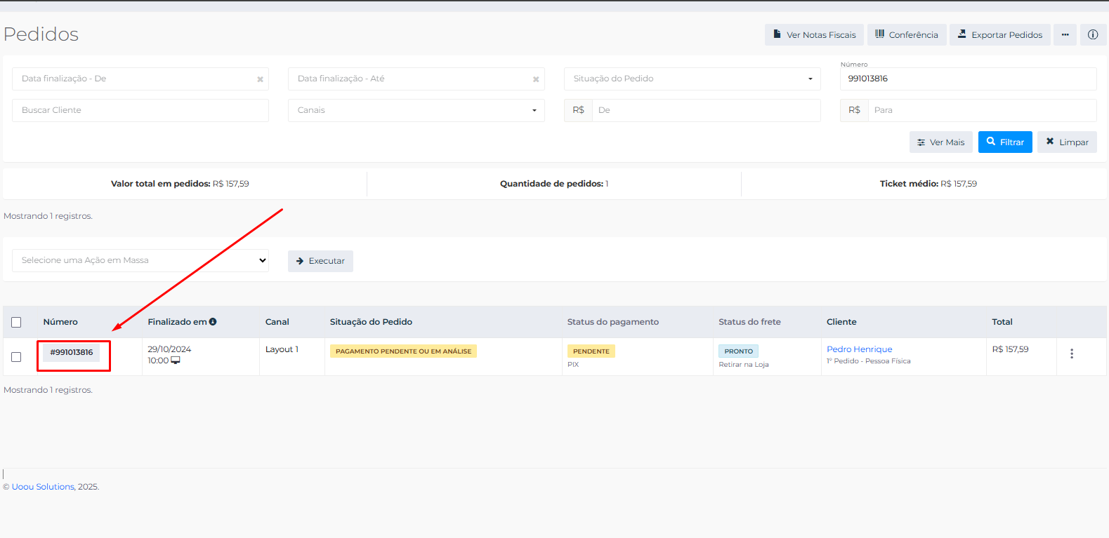 3 - Clique no número do pedido para entrar dentro dele.