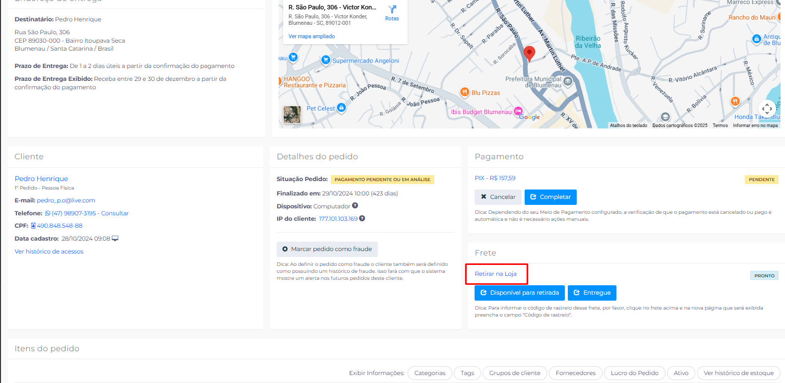 Segunda Maneira para colocar o rastreamento no pedido