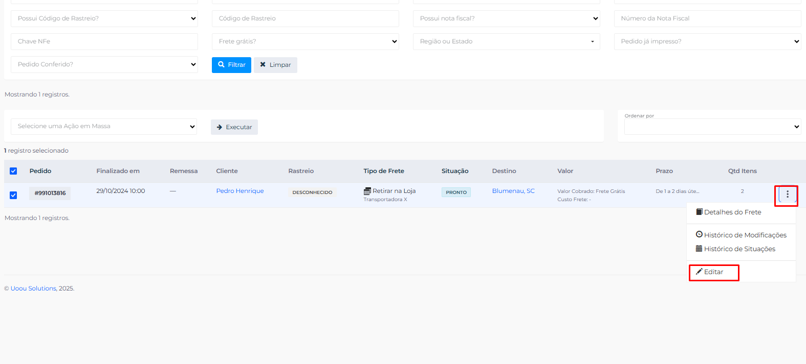2 - Localizar o pedido desejado, clicar nos três pontinhos>editar