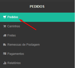 No painel administrativo, acesse o menu Pedidos > Pedidos.