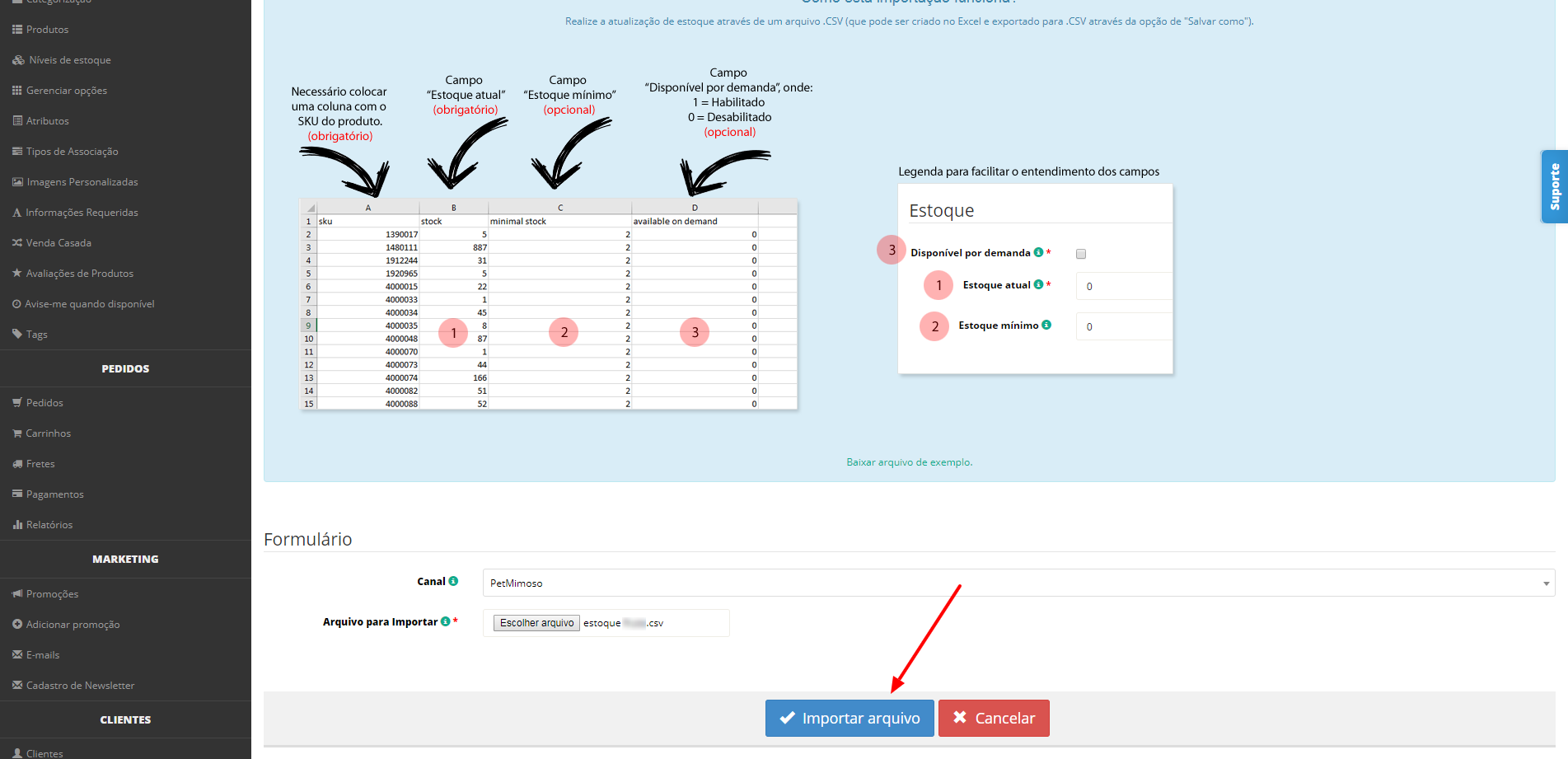 Importando o estoque de produtos