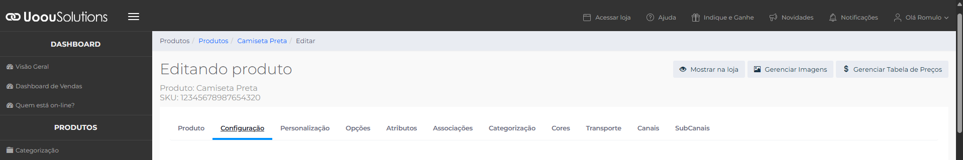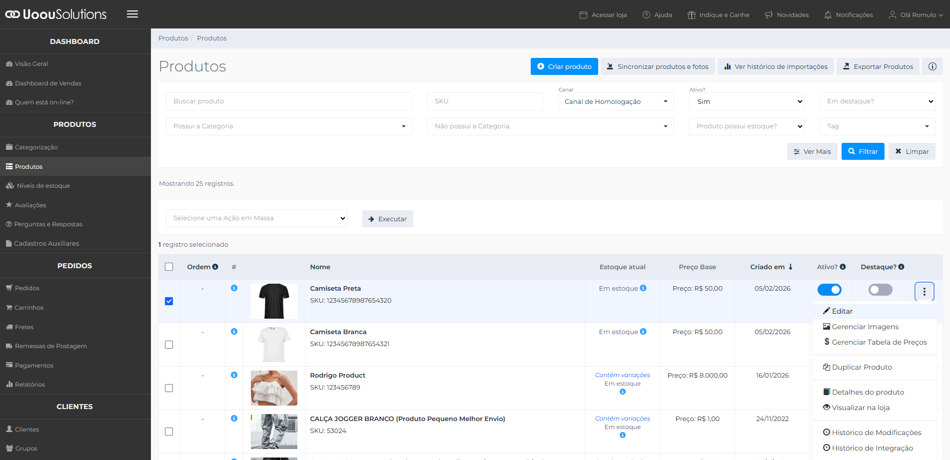 Acesse Produtos através do menu lateral e selecione o produto que você deseja editar.