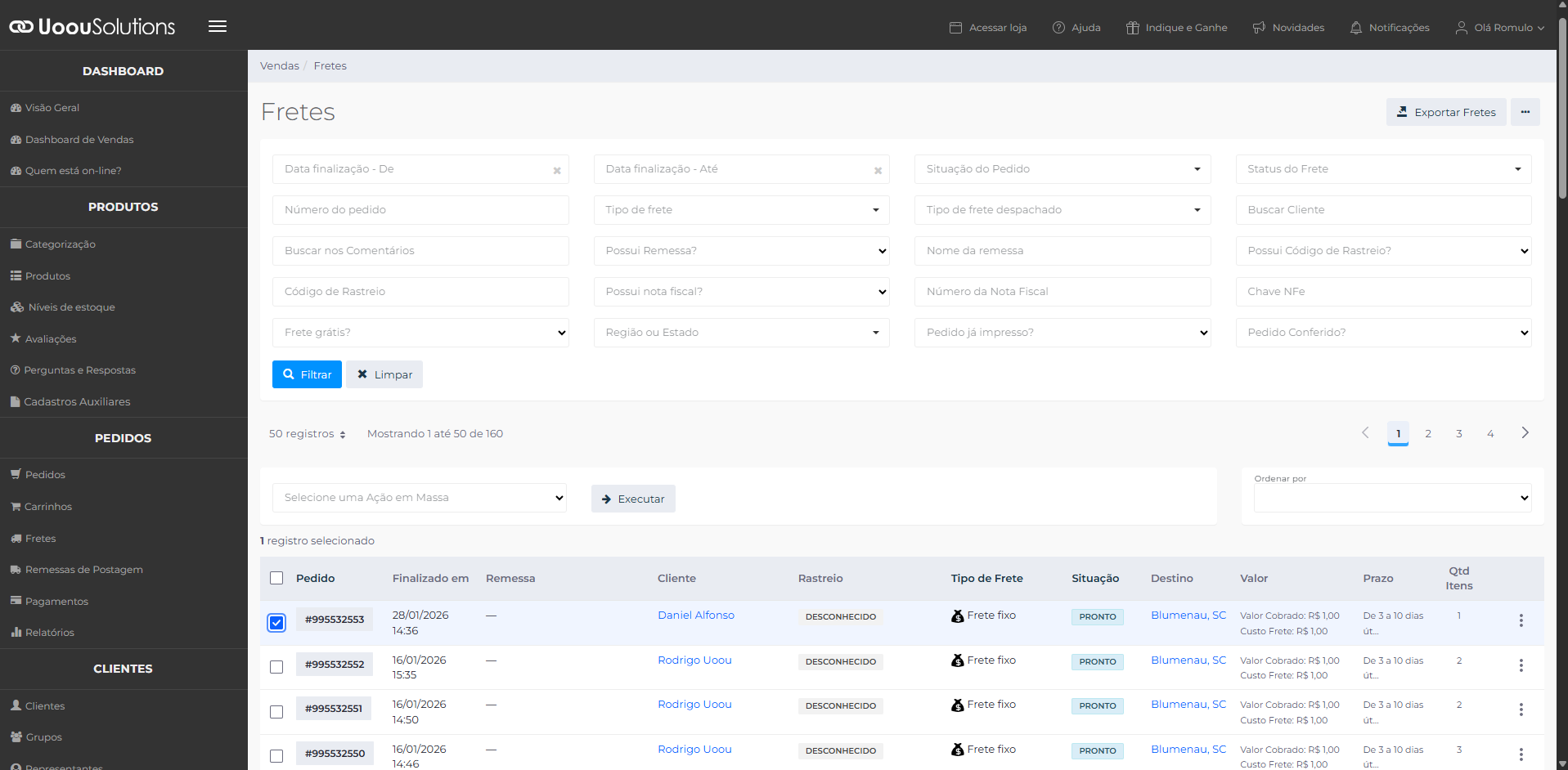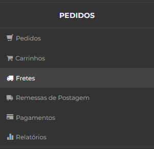 No painel administrativo, acesse o menu Fretes.