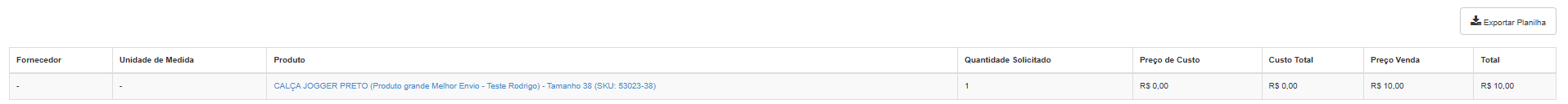 Também é possível visualizar essa tabela na aba Produtos por fornecedor.