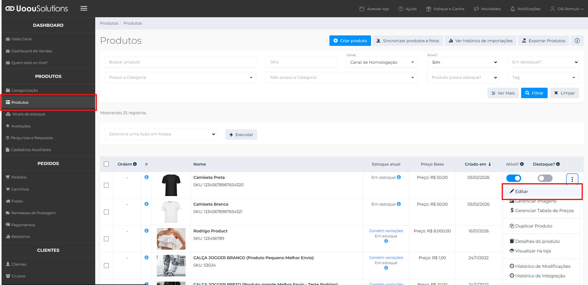 No Painel Administrativo, acesse o menu Produtos.