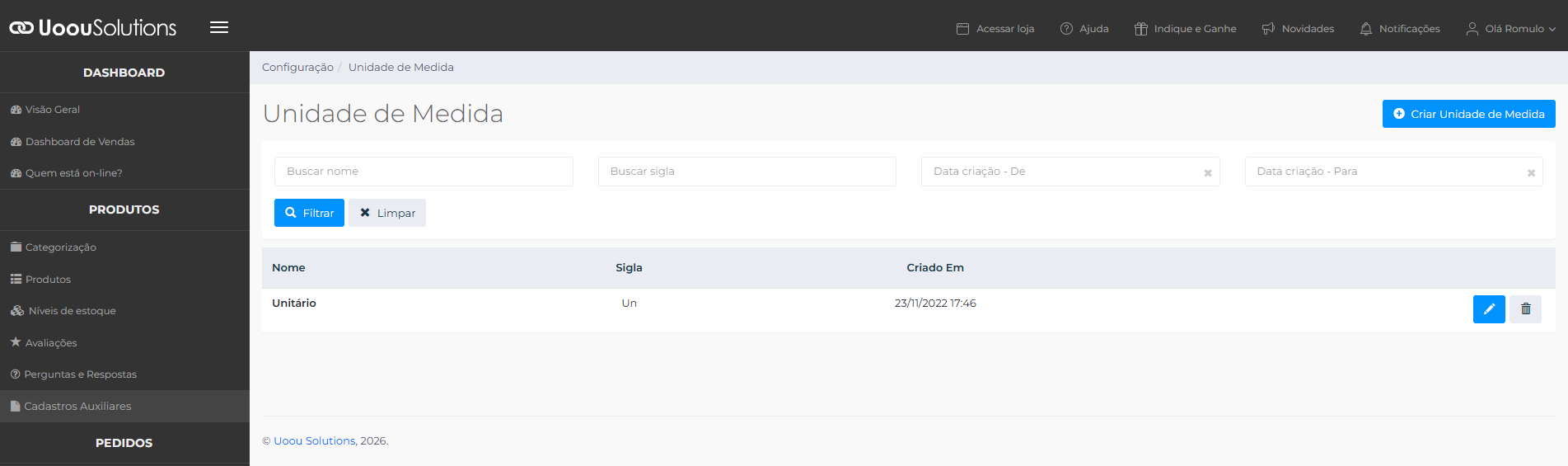 Neste tutorial é apresentado o passo a passo para cadastrar Unidades de Medida no site.