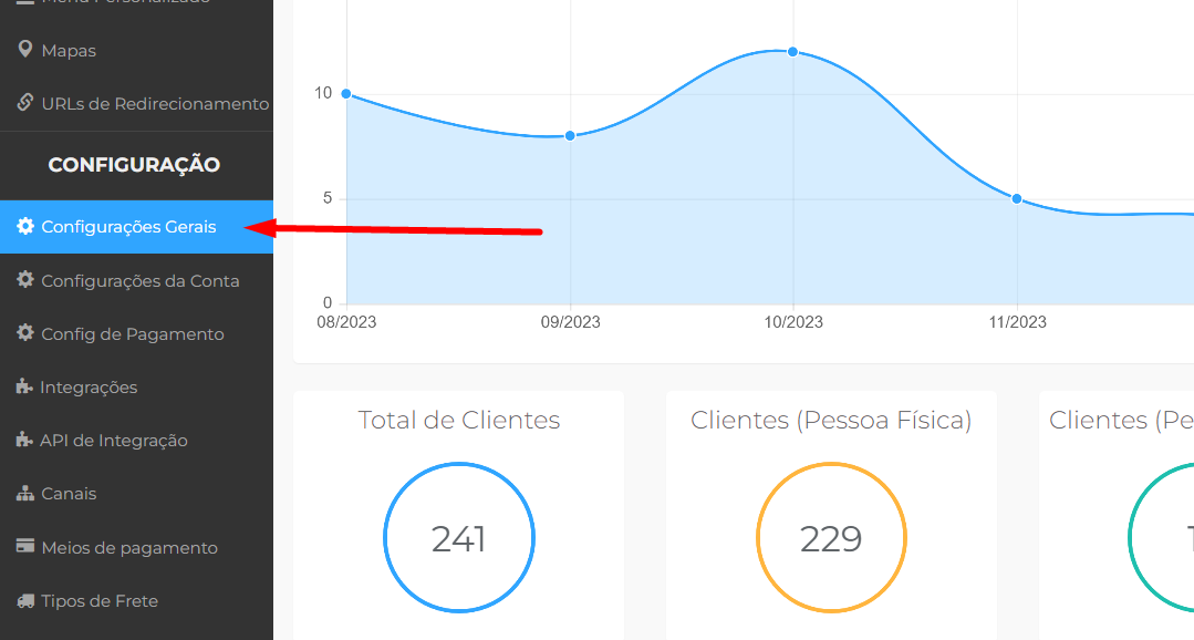 1- Em seu Painel Administrativo, acesso o menu "Configurações Gerais"