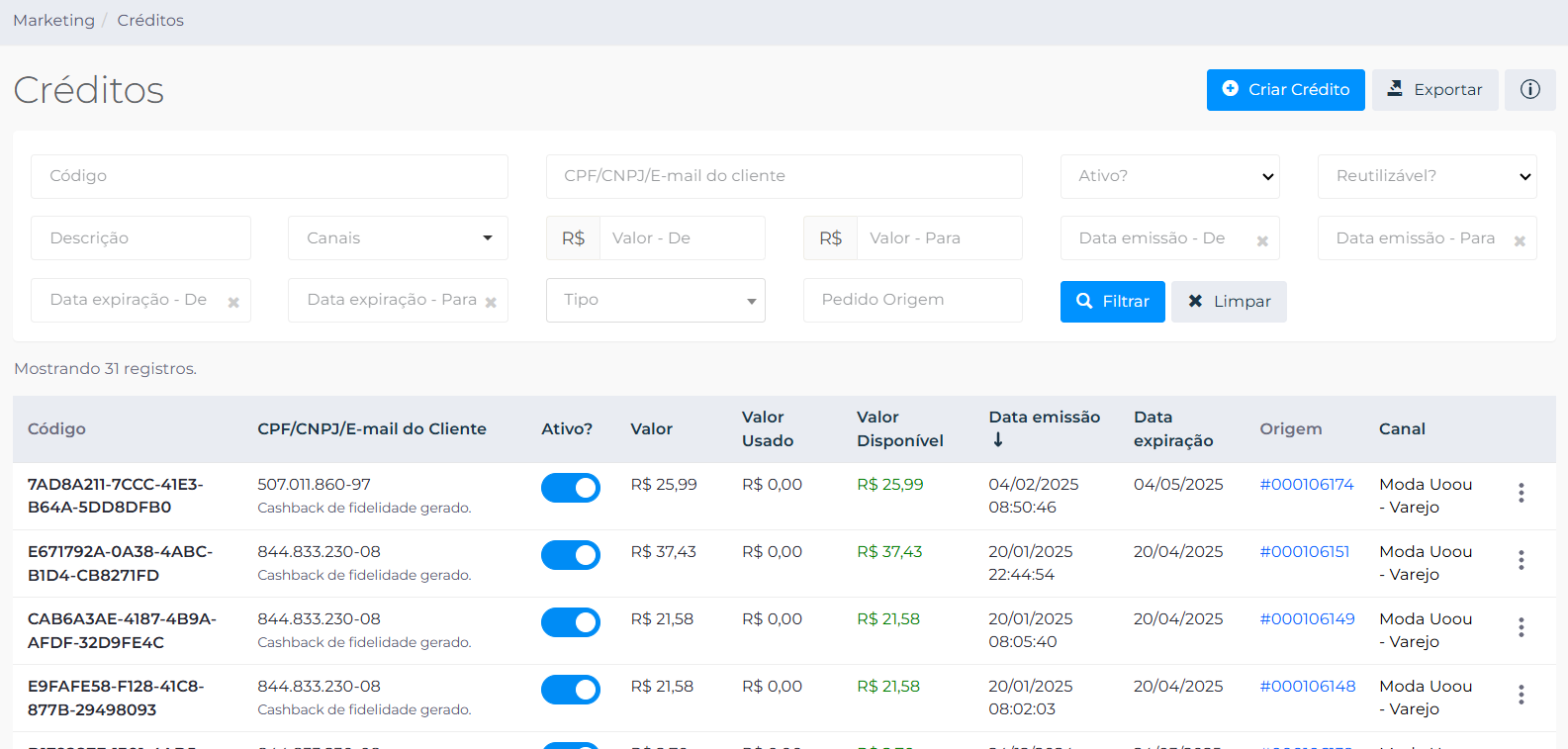 Agora você pode criar créditos personalizados para seus clientes de forma prática e sem a necessidade de cupons! O crédito ficará disponível na conta do cliente, e ele poderá decidir quando e como utilizá-lo.