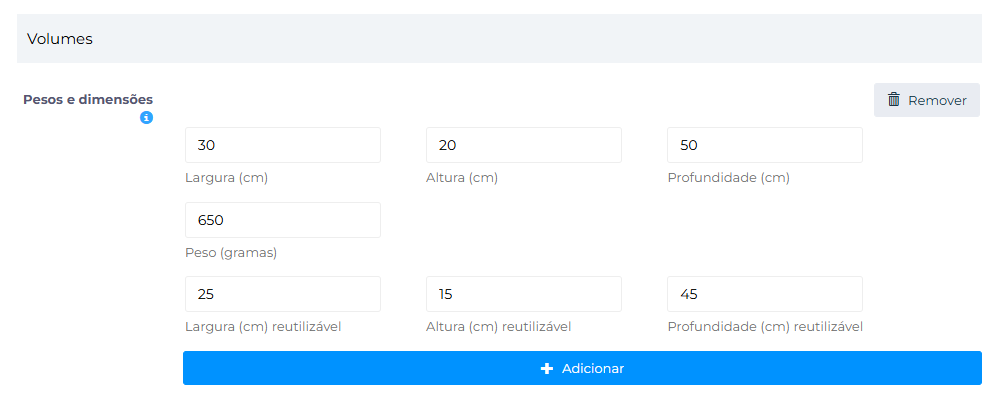 Se não houver embalagens compatíveis, o sistema calcula usando as dimensões do produto.