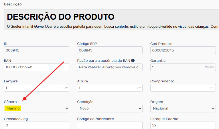 Se você está cadastrando um produto com diversos tamanhos, como roupas ou calçados, o Mercado Livre irá exigir uma grade de tamanhos para prosseguir com a ativação dos produtos dentro do Mercado Livre.