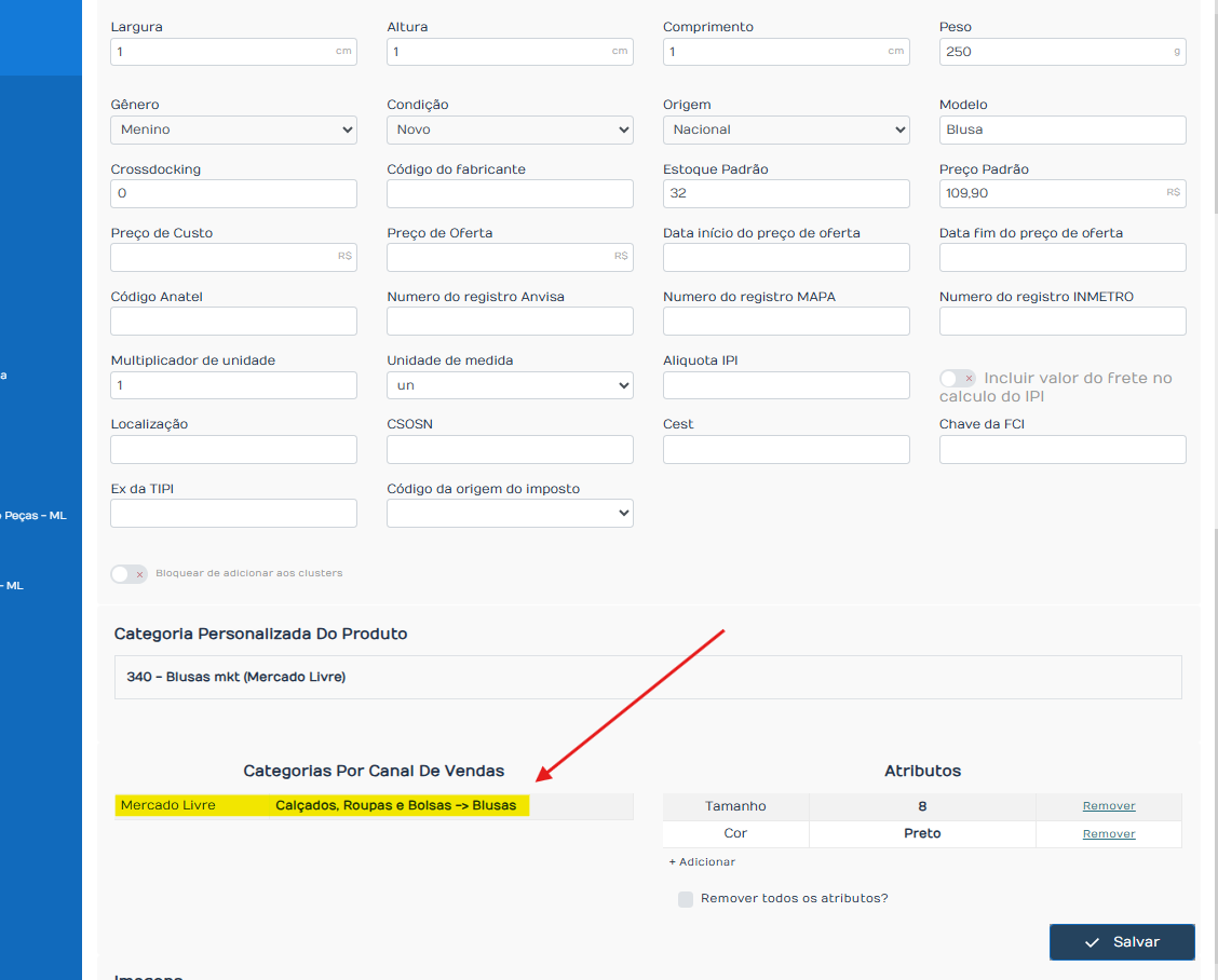 Basta clicar em salvar e aguardar cerca de 24h para o Mercado Livre atualizar essa informação na API. Após isso basta reenviar os SKU's com esse erro e aguardar a aprovação do Mercado Livre.