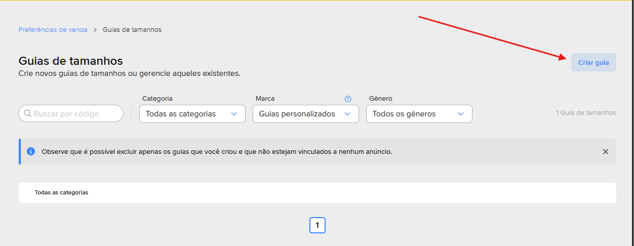 Acesse sua conta no Mercado Livre e vá em ''Meu perfil'' e procure em Vendas > Preferências de venda e procure por ''Guias de tamanhos''