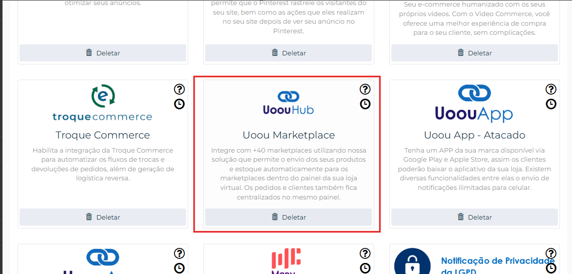 Para realizar a configuração acesse o menu de Integrações > Uoou Marketplace: