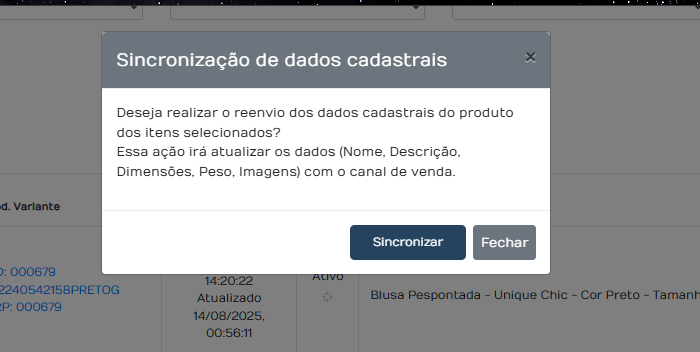 - Atualização de cadastro base (nome, dimensões, descrição, etc...).